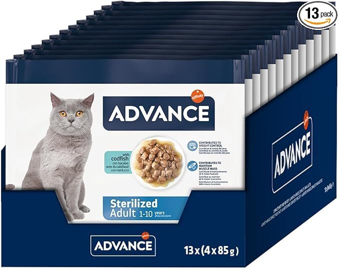 Succombez à la finesse marine avec Advance Pâtée Adulte Cabillaud 85g. Ces délicats effilés de cabillaud en sauce apportent une nutrition équilibrée et une saveur irrésistible, idéales pour les chats adultes amateurs de poisson recherchant une digestion légère.