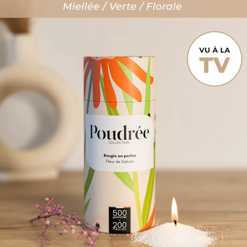 La BOUGIE POUDRÉE FLORA FLEUR DE SAKURA célèbre la poésie du printemps et le renouveau de la nature.