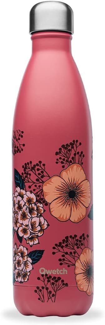 Bouteille isotherme inox / Gourde design floral Qwetch / Format compact 260 ml.
