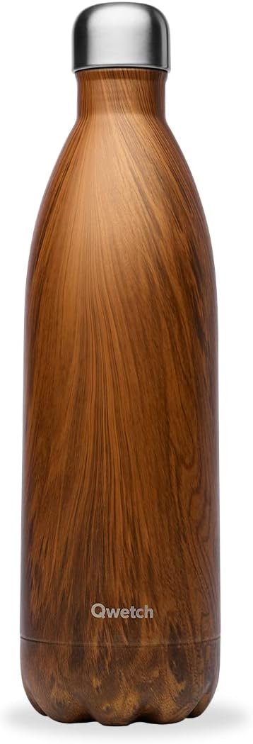 Purchase & earn 15 points!Bouteille isotherme Qwetch Wood 1L, design bois élégant, garde boissons chaudes 12 h et froides 24 h. Idéale pour journées longues, partage ou randonnée.