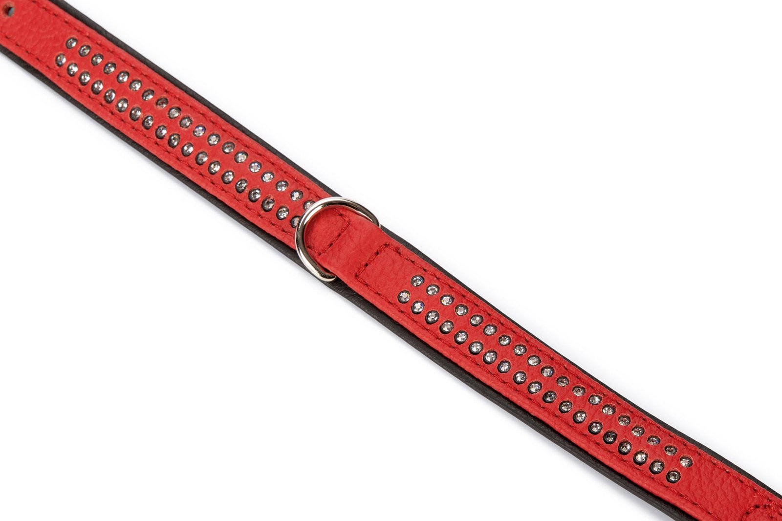 Purchase & earn 6 points!Alliez élégance et robustesse avec ce Collier en simili-cuir Rouge serti de Strass étincelants, spécialement conçu pour les chiens de grande taille (XL). Son design chic et sa couleur rouge éclatante en font l’accessoire idéal pour les grandes occasions ou pour affirmer le style unique de votre compagnon au quotidien.