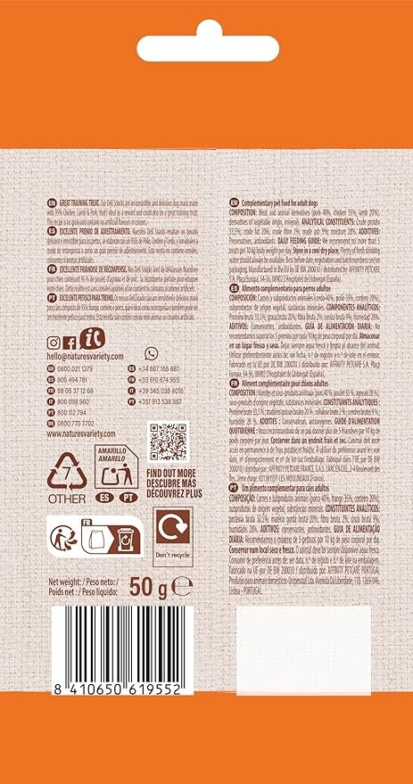 Parce que les moments de complicité méritent le meilleur de la nutrition, Nature’s Variety a créé les Deli Snacks. Cette recette unique combine deux sources de protéines animales de haute qualité : le poulet tendre et l’agneau savoureux.
