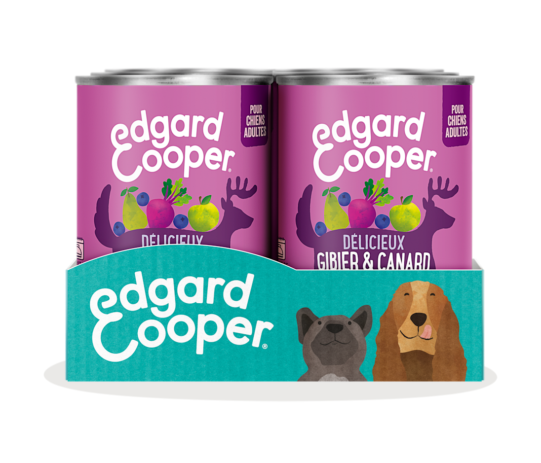 Edgard & Cooper cuisine cette boîte avec des ingrédients frais pour préserver toutes les saveurs et les nutriments. Le mélange de gibier et de canard apporte des protéines de haute qualité qui soutiennent la masse musculaire de votre chien adulte. Nous ajoutons des abats nobles pour faire le plein de vitamines essentielles. Cette formule sans céréales facilite la digestion et convient parfaitement aux chiens sensibles.